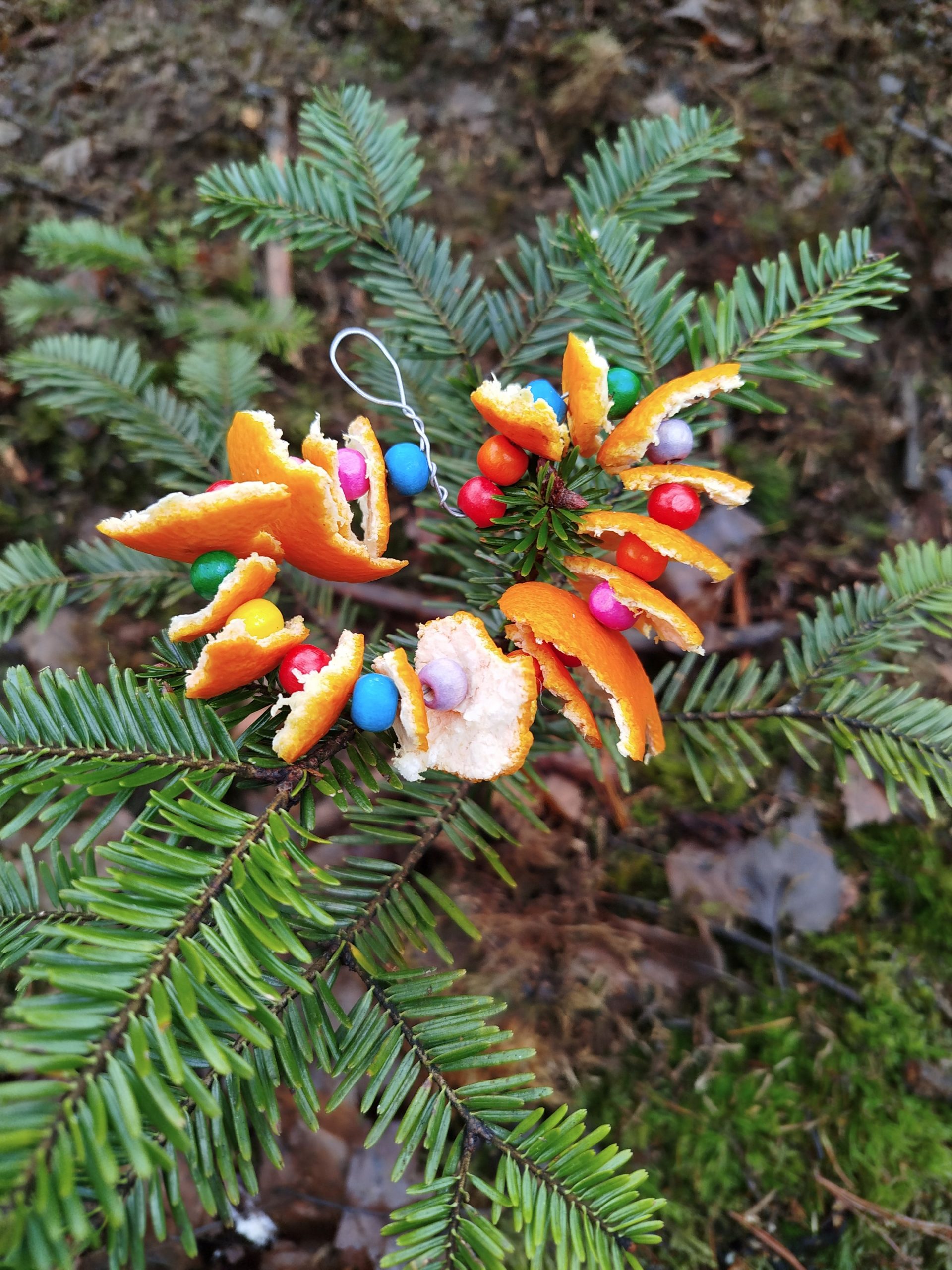 …was machen die Wakitis während der Freispielzeit, wenn sie nicht gerade in Rollenspielen zu finden sind? Ja, sie sind auch soooo gerne kreativ. Wir essen saftige Mandarinen und gestalten aus der Schale wunderschöne Anhänger mit bunten Perlen…. So kann man auch im Wald mit den Freunden gleich ein bisschen Weihnachten spielen und Bäume schmücken 🙂
