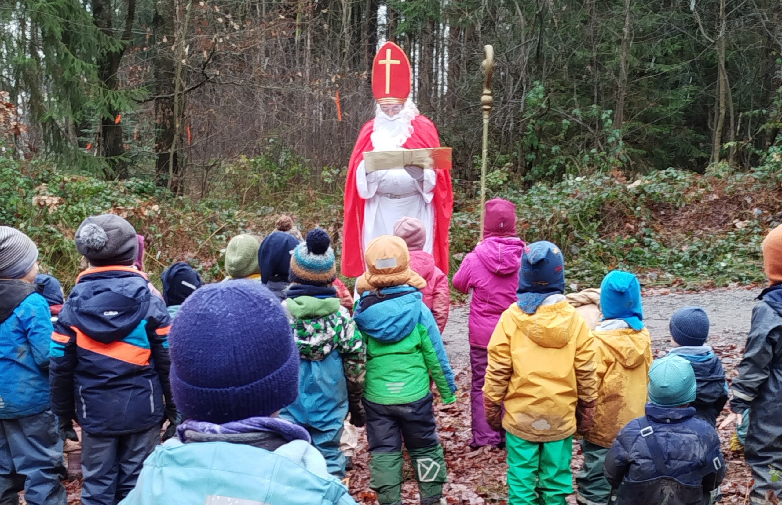 …welch eine Aufregung an diesem Tag. Tatsächlich findet auch uns der Nikolaus im Wakiti-Wald. Mit seinem goldenen Stab und seinem goldenen Buch besucht er unsere Wakitis. Was da wohl so geschrieben steht? Natürlich viel positives über die Entwicklung unserer Kinder und der Gruppe. Am Ende singen wir ein Lied und sind gespannt was wohl in den kleinen Säckchen so ist.